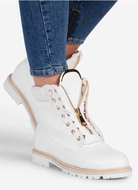 Choć na wybiegach pojawiły się tłumnie, to w sieciówkach dopiero nieśmiało wchodzą na półki. Na obecną chwilę może być trudno je znaleźć, jest jednak marka, która trendy z wybiegów w błyskawicznym czasie przenosi na swoje kolekcje i jest to oczywiście Zara. Znajdziemy tu aż dwa modele i nie ma co ukrywać, że prezentują się bardzo efektownie. Poza tym szukaj ich w sklepach internetowych. Pamiętajmy, że białe botki nie muszą być na wysokim obcasie. Trapery do dżinsów też wyglądają świetnie!